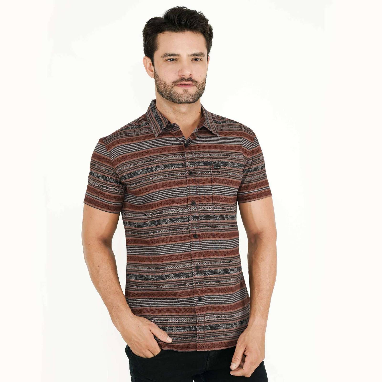 Cressida Kemeja Casual Slimfit Lengan Pendek Brown - HMKBS.HB025X
