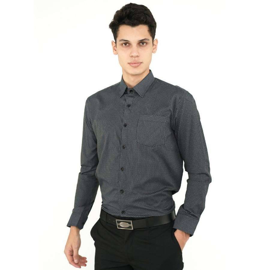 Kemeja formal dengan desain yang pas di tubuh, memberikan tampilan yang rapi dan elegan. Terbuat dari katun CVC, yaitu campuran katun dan polyester, yang memberikan kenyamanan, daya tahan, dan kemudahan perawatan. Kemeja ini sangat cocok untuk digunakan di kantor, pertemuan bisnis, atau acara formal lainnya. Dengan kemeja ini akan memberikan siluet tubuh yang lebih tegas dan menarik.